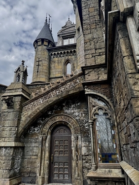 А под конец - сам замок. Готические башни, горгульи на стенах, грифоны у входа и рыцарские легенды. Место, где Средневековье встретилось с Волгой.